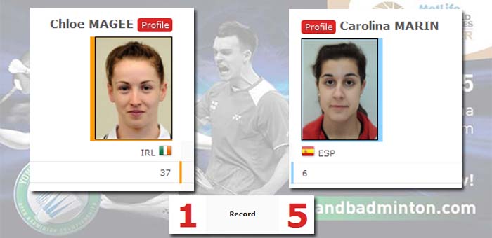 [WS] Chloe MAGEE vs Carolina MARIN แข่งเวลาประมาณ 01.20 น. (คอร์ท 2)