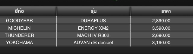 พอดีอาทิตย์หน้าจะเดินทางไกลไปเชียงรายจากชลบุรี(ไปประมาณ 1000 กม.) เลยถือโอกาสเปลี่ยนยางซะหน่อย ปกติขับรถไม่เกินอาทิตย์ละ 200 กิโลเมตรครับ ที่เล็งๆไว้ ช่วยเลือกให้หน่อยครับ ข้อดีข้อเสียของแต่ละรุ่น ยี