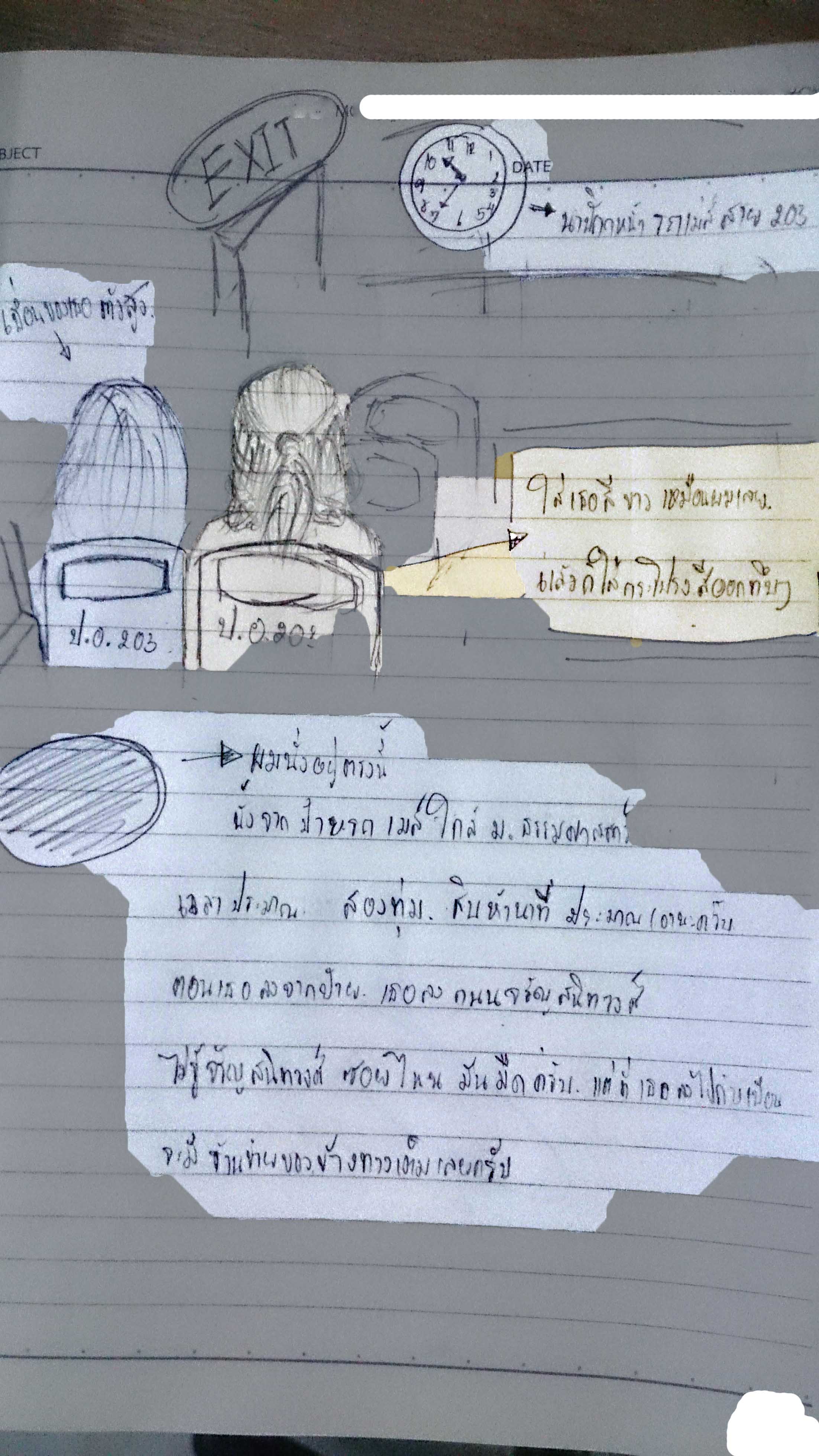 ณ เวลาประมาณ สองทุ่มสิบห้านาที(ผมกะเวลาเอาครับตอนนั้นไม่มีโทรศัพท์เลยครับ) ผมได้ขึ้น รถเมล์ MINI สาย 203 ที่ป้ายใกล้ๆกับ ม.ธรรมศาศตร์ แล้วก็ได้เจอเธอคนนี้ ในภาพ (ผมอาจจะวาดไม่เหมือนอาจจะรีบ555)