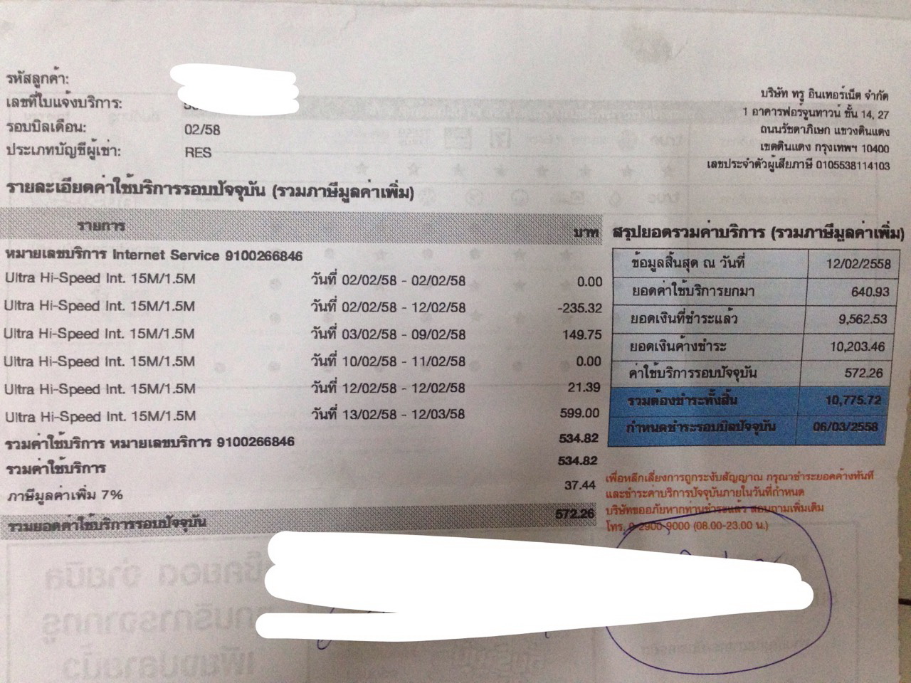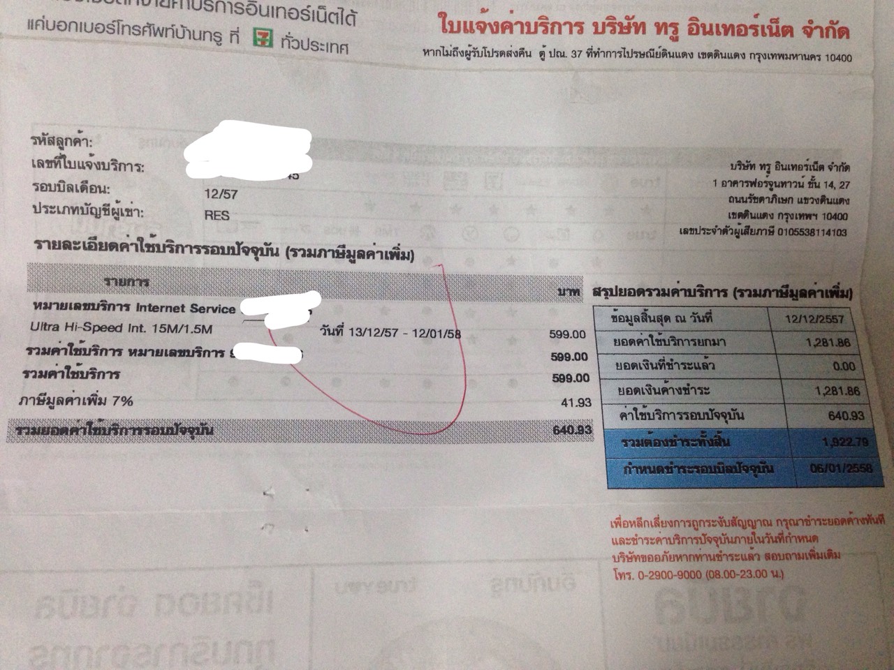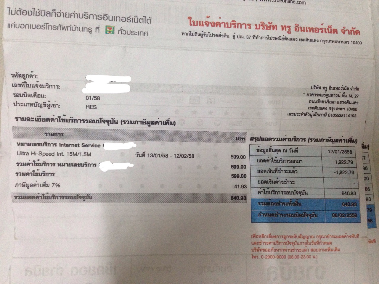 และนี่คือบิลที่ทาง true เรียกเก็บมาหลังจากที่ผู้จัดการเซ็นรับทราบแล้ว