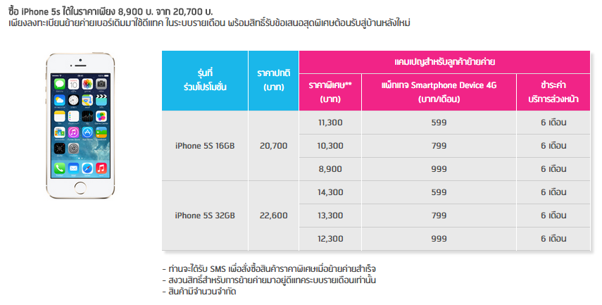 โปรย้ายค่ายไป DTAC แลกซื้อ iPhone 5s เริ่มต้น 8400 บาท คำนวณยังไงครับ