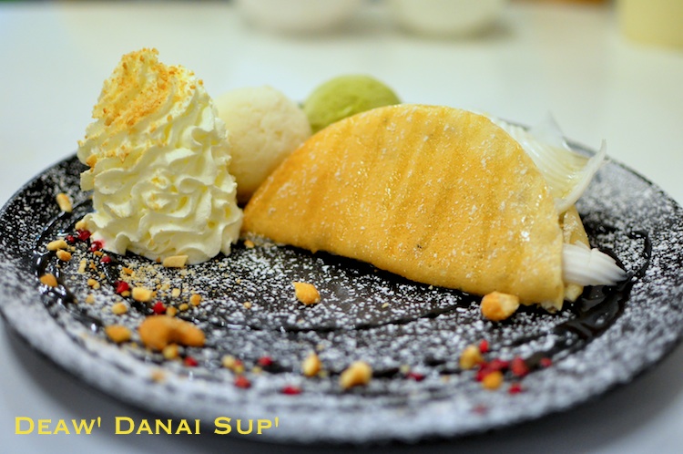 ผมสั่งถังแตกไฮโซมาก่อนเลยครับ โดยเลือกไอศครีมเป็น เต้าหู้และ ชาเขียวครับ ตัวนี้จะใส่เนื้อมะพร้าวตามสไตล์ขนมถังแตกเลยครับ โรยน้ำตาลไอซิ่งและเม็ดมะม่วงเข้าไปเพิ่มความกรุบกรับด้วย ส่วนอีกที่เป็นของโปรดผมที่ต้องสั่งทุกครั้งที่มาคือ ถังแตกลาวาครับ