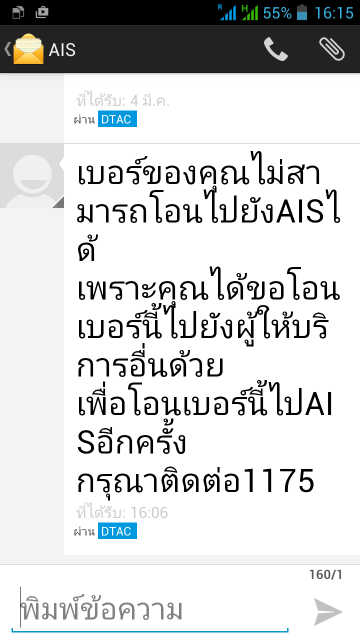 วันนี้ได้ sms ตามภาพ โทรไปภาม ais บอกให้ถาม Dtac