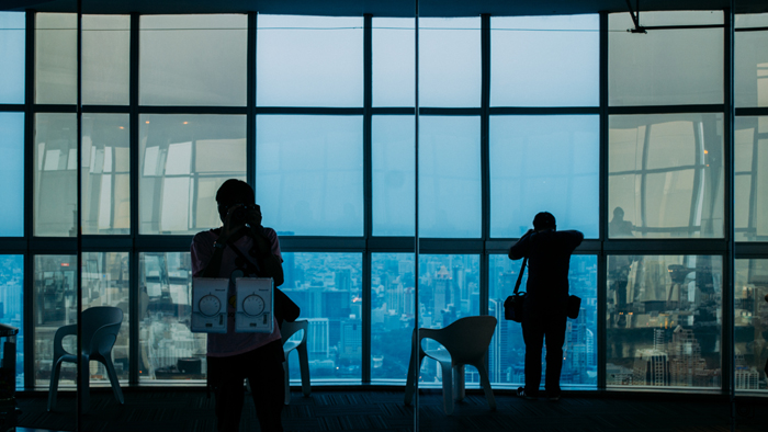 ต่อมาผมก็ลงมาชั้นที่ 77 เพื่อที่จะลองหัดถ่ายภาพแบบ City Scape ที่เขาถ่าย ๆ กัน ซึ่งไม่เคยถ่ายมุมเมืองแบบนี้สักที ขอลองสักครั้งในชีวิต ว่าแล้วก็ตั้งขาตั้งแล้วกดมุมถ่าย ทำให้ได้ภาพนี้มาครับ อยากบอกคนที่จะมาว่าการถ่ายภาพบนชั้น 77 นี้ต้องถ่ายผ่านกระจกของตึกนะครับ มีปัญหาเรื่องแสงสะท้อน โน่นนี่นั่นแน่นอน ถ้าใครมีพวก CPL ลดแสงสะท้อนจะช่วยได้ แต่ผมไม่มีก็กดมาแบบนี้ครับ คิดว่ามาเอาบรรยากาศใหม่ สนุก ๆ ไปเรื่อย