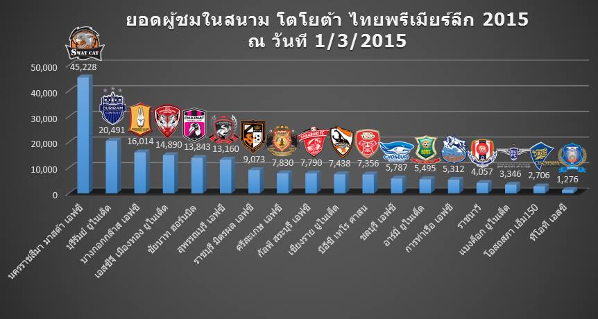 ยอดผู้ชมในสนามไทยลีก 3 นัดที่ผ่านมา