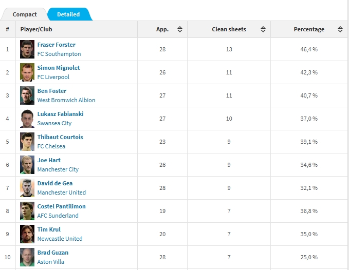 จนสถิติรวมตอนนี้ รักษาคลีนชีตได้แล้ว 11 นัด ขึ้นมาเป็นอันดับสอง เป็นรองแค่ Fraser Forster ของ เซาท์แทมตันคนเดียว