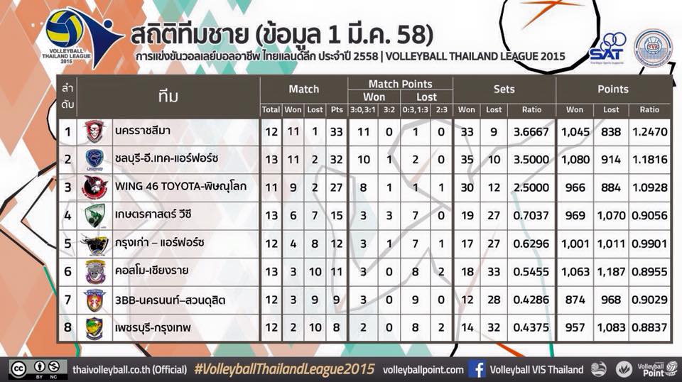 สรุปคะแนนวอลเลย์บอลไทยแลนด์ลีกเมื่อจบการแข่งขันนัดแรก// รวมเทปการแข่งขัน // ตารางการแข่งขัน และถ่ายทอดสดในนัดที่ 2