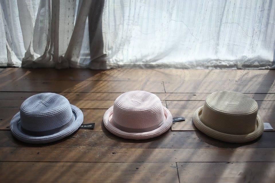 (2) หมวกสไตล์ Boater ปีกม้วน สีชมพูพาสเทลหวานๆ แต่คาดด้วยสายสีเทาอ่อน เก๋มากค่ะ ไซส์ S/M (แว่นขายไปแล้วค่ะ)
