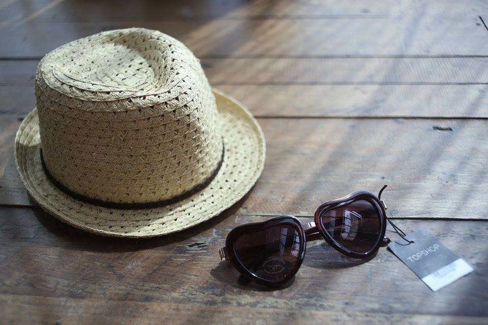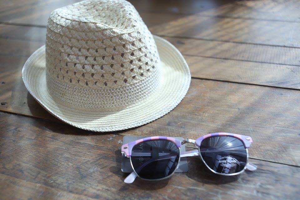 (1) หมวกสไตล์ Boater สีฟ้าพาสเทลคาดสายสีเทา ไซส์ S/M (แว่นตากันแดดขายไปแล้วค่ะ)