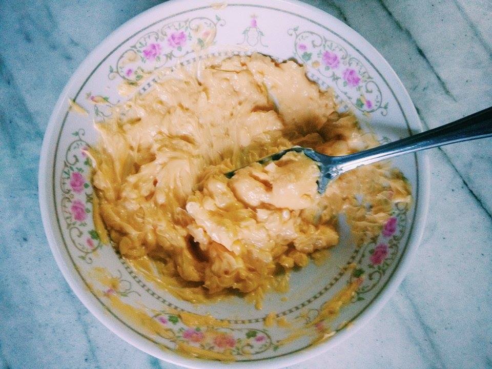 เราไม่มีที่ตีแป้งตีเนยเลยใช้ส้อมแบบบ้านๆนี่แหละ55 บี้ๆกวนๆวนไปวนมาแปปเดียวเนยก็ฟูแล้ว แปปเดียวจริงๆถ้าเนยแข็งๆนี่ตีนานหน่อย แรกๆนี่หนึบหนับเลย