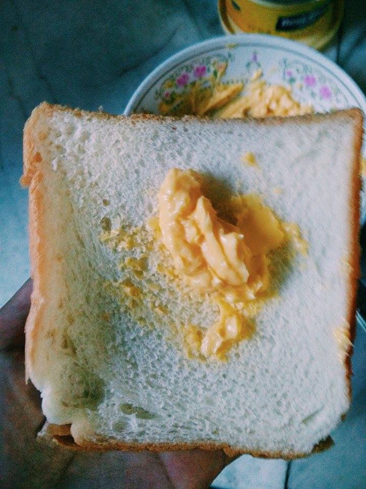 อันนี้แผ่นสุดท้ายเนยไม่พอแล้ว เกือบจะพอกับขนมปังหนึ่งถุง ซื้อถุงเล็กมามีทั้งหมด 10แผ่น ทำไปได้ 9แผ่น เหลืออีกแผ่นกินเล่นซะ ตอนแรกคิดว่าจะทาได้แค่สี่ห้าแผ่น