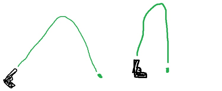 ***** ยิงโค้งความเร็วตอนตกก็จะเป็นแบบโปรเจ็กไตล์ หัวกระสุนจะพุ่งขึ้นและลงตามแนวองศาที่ยิง