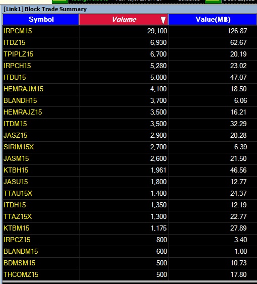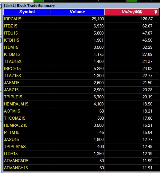 รายงาน 20 อันดับ SSF ที่ทำรายการ Block Trade 5/3/58 20 อันดับแรก