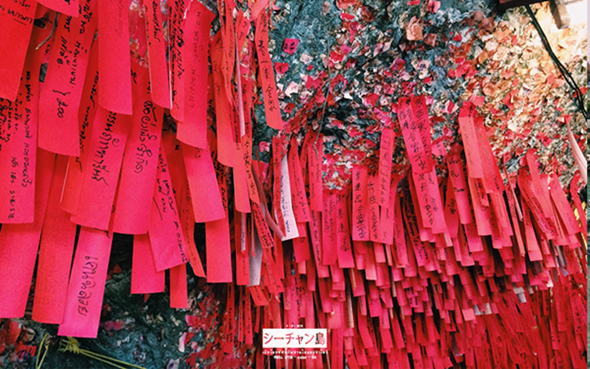 ตอนนี้มีการแก้ปีชงด้วยนะครับเหมือนจะให้เขียนชื่อบผ้าแดงๆแล้วนำไปติดบริเวณถ้ำ