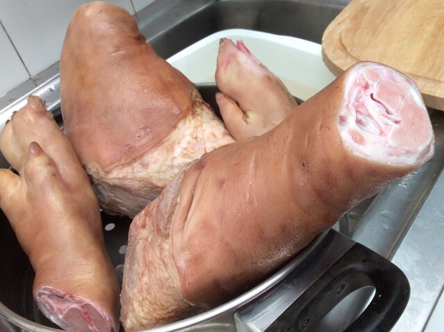 1. ล้างขาหมูให้สะอาด ถอนขนที่อาจยังมีเหลือ ผึ่งให้แห้ง
