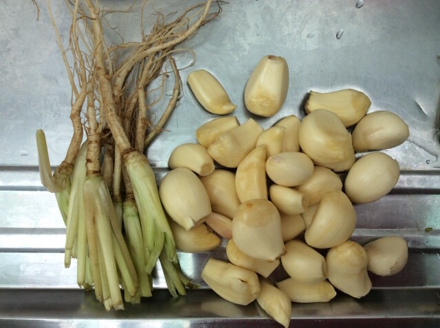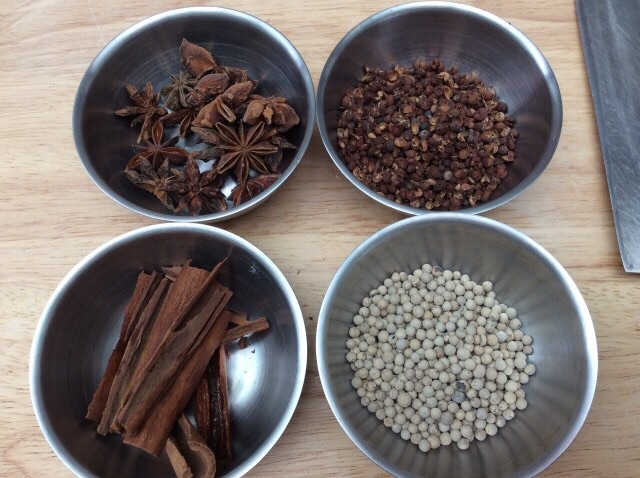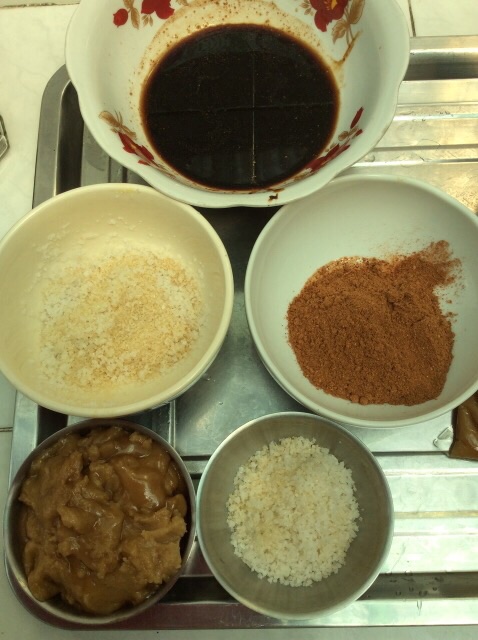 ส่วนผสมเครื่องคั่ว ( คั่วทีละอย่างด้วยไฟอ่อนๆให้หอม จากนั้นนำมาห่อด้วยผ้าขาวบาง)
