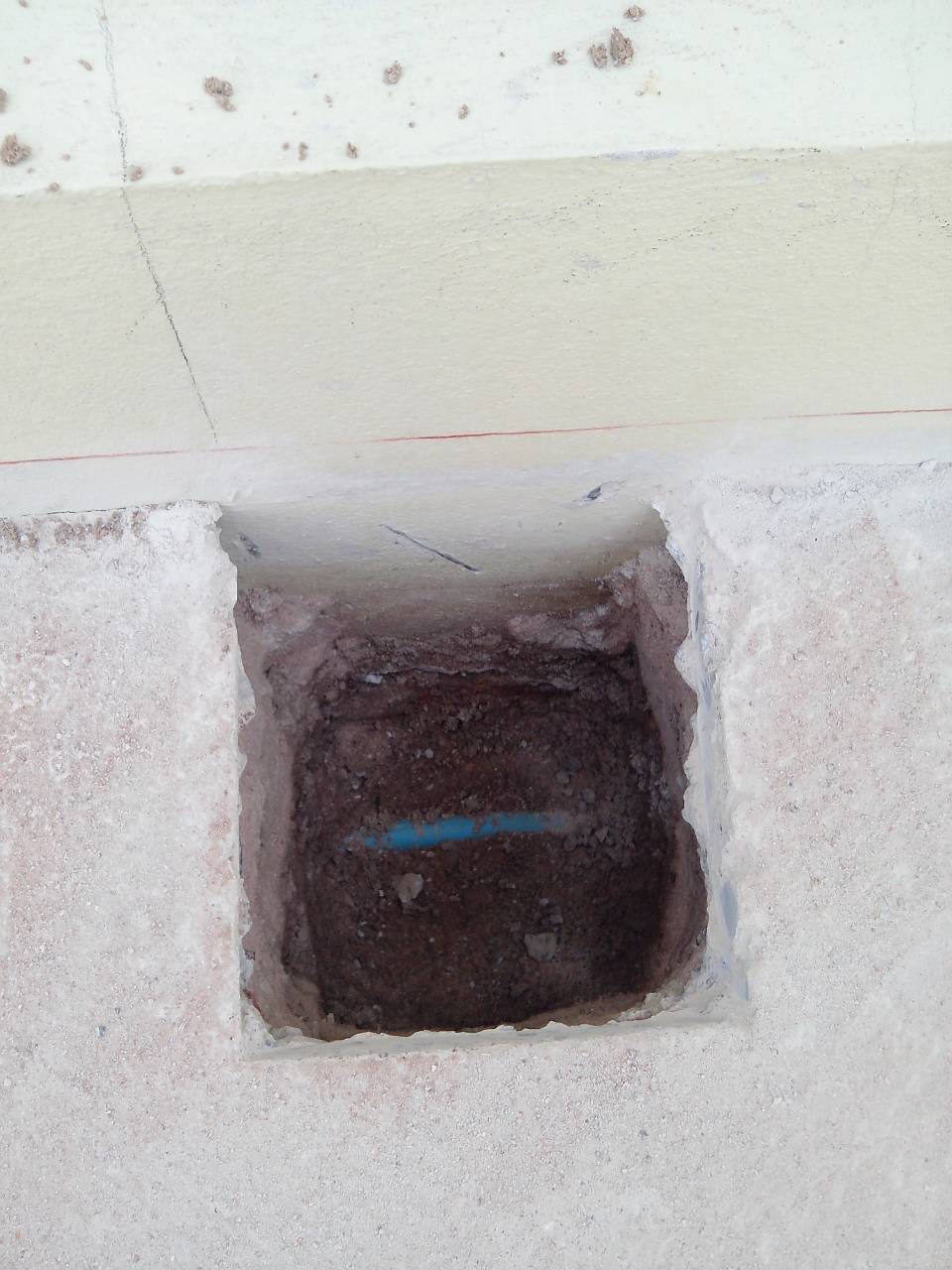 ผมไม่ได้มีความรู้ทางช่างขอเล่าเหตุการณ์และสอบถามดังนี้ครับ เสาท่อเหล็กของโรงรถที่สร้างไว้เมื่อ 4-5 ปีก่อนโดยฝังเสาลงในถนนรอบอาคารมีบางจุดมีรอยสนิมกินผมจึงหาช่าง มาสกัดลงไปจนเป็นหลุมกว้างพอสมควรแล้วพบ