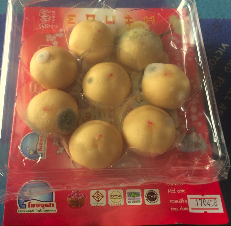 ซื้อขนมจากร้านแม่กิมไล้ พบว่าขึ้นรา และวันหมดอายุมีการแก้ไข