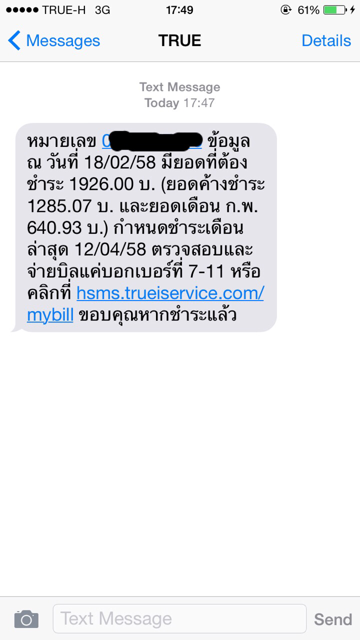 TrueMove H ช่วยปรับปรุงระบบ billing และ sms แจ้งยอดค้างชำระมั่วๆด้วยนะคะ