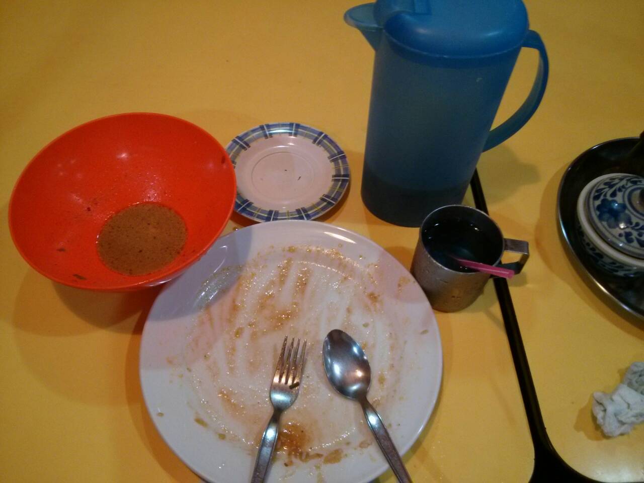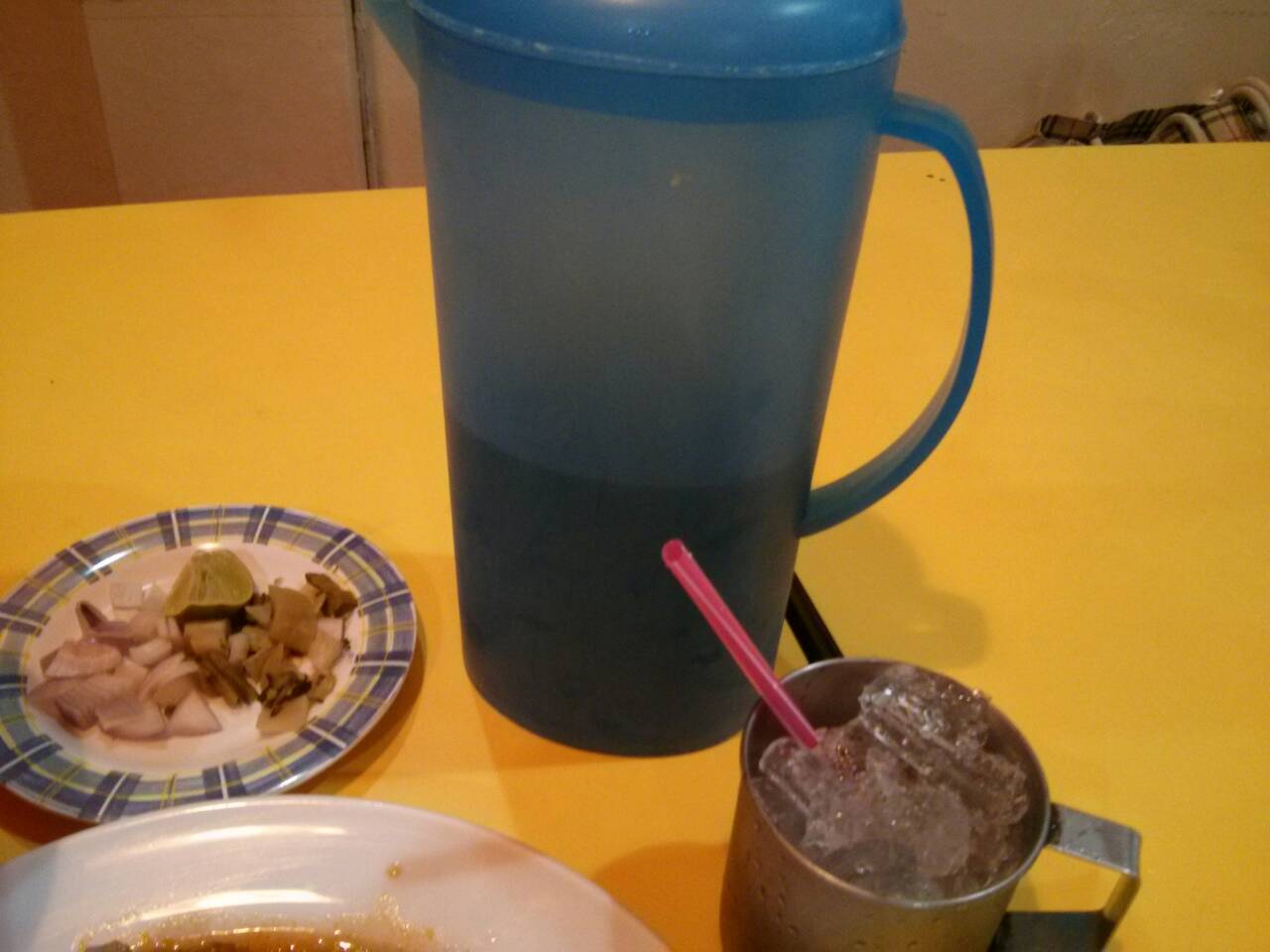 ชอบที่ร้านนี้มีเหยือกน้ำอัญชัญใบเตยให้กินฟรีๆ แต่ค่าน้ำแข็ง 2.- นะ ตอนรีวิวคราวก่อนเหมือนจะเป็นน้ำใบเตยที่กลิ่นหอมมาก แต่คราวนี้ไม่มีกลิ่นเลยมีแต่สีน้ำเงินสวยๆเฉยๆ
