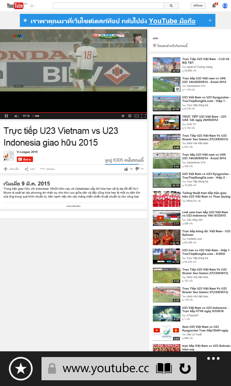 IE บน Windows Phone ดูลิงค์ถ่ายทอดสดบน Youtube ได้แล้ว