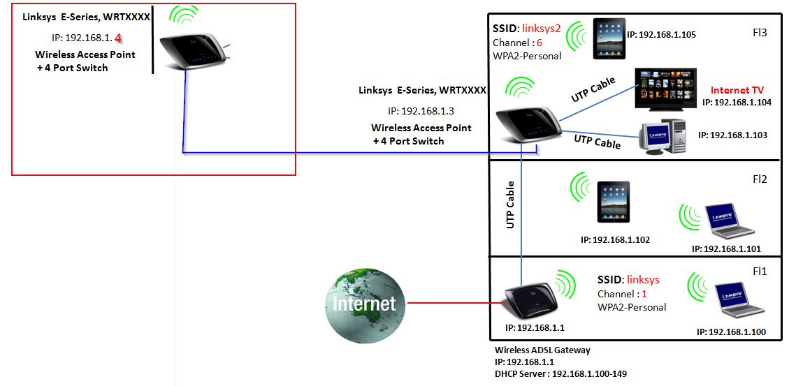 อยากขยาย Access point เพิ่มอีกหนึ่งชั้น สามารถเอามาต่อพ่วงดังรูปได้ไหมครับ ไม่อยากลากสายลงมาด้านล่าง