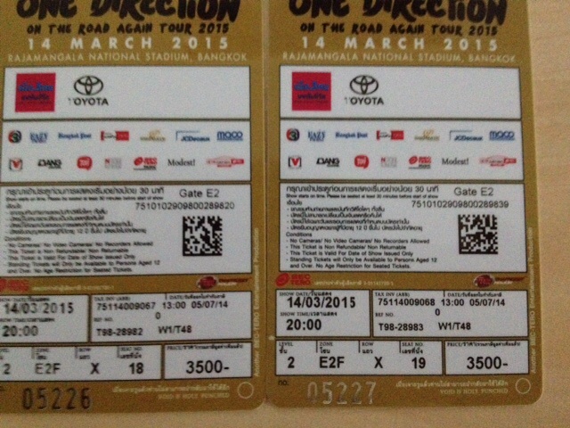 ด่วน!!ตั๋วคอนเสิร์ต one direction 2 ใบ ใบละ 3500 ขายแค่ใบละ 3000 เท่านั้น