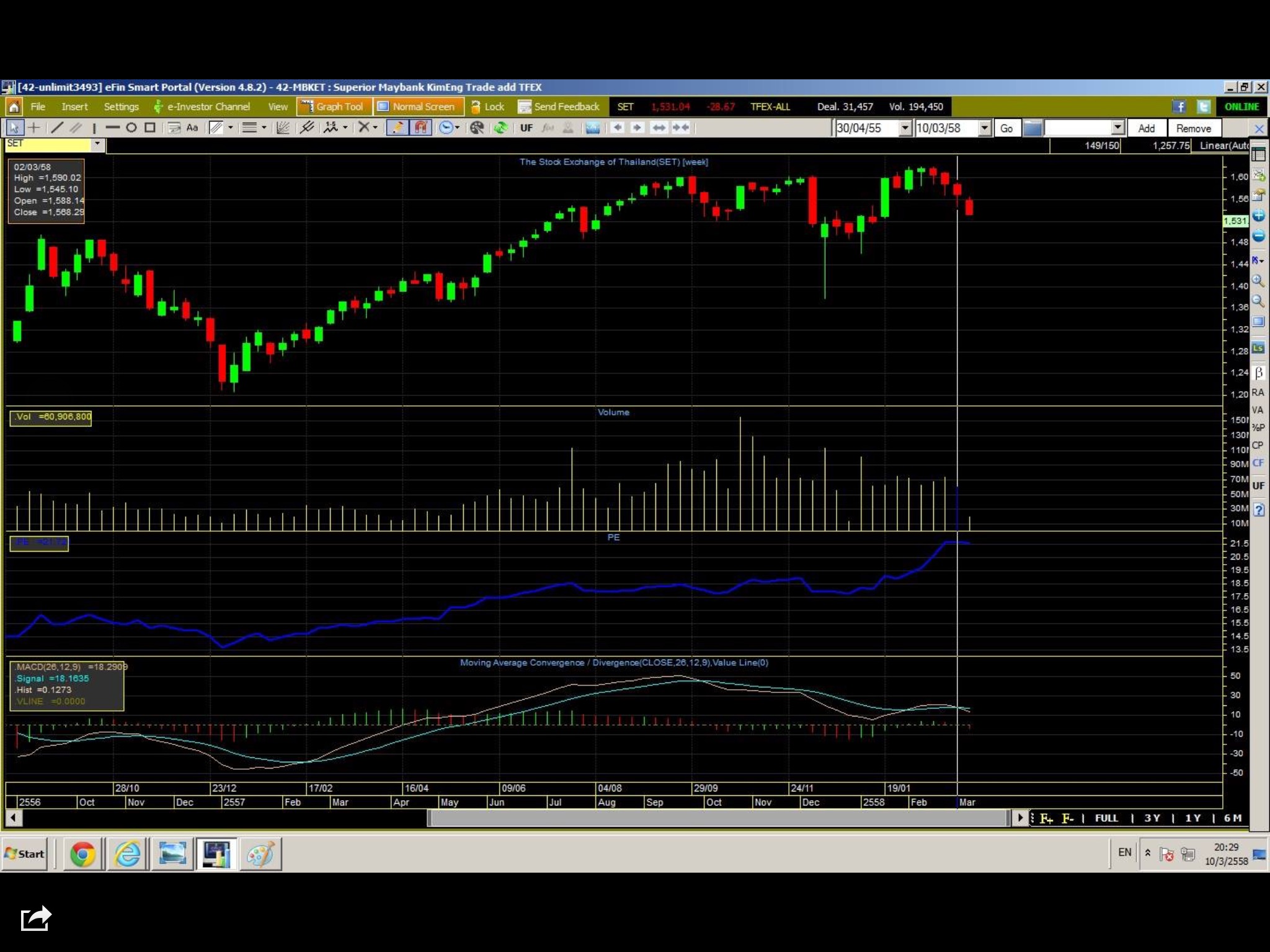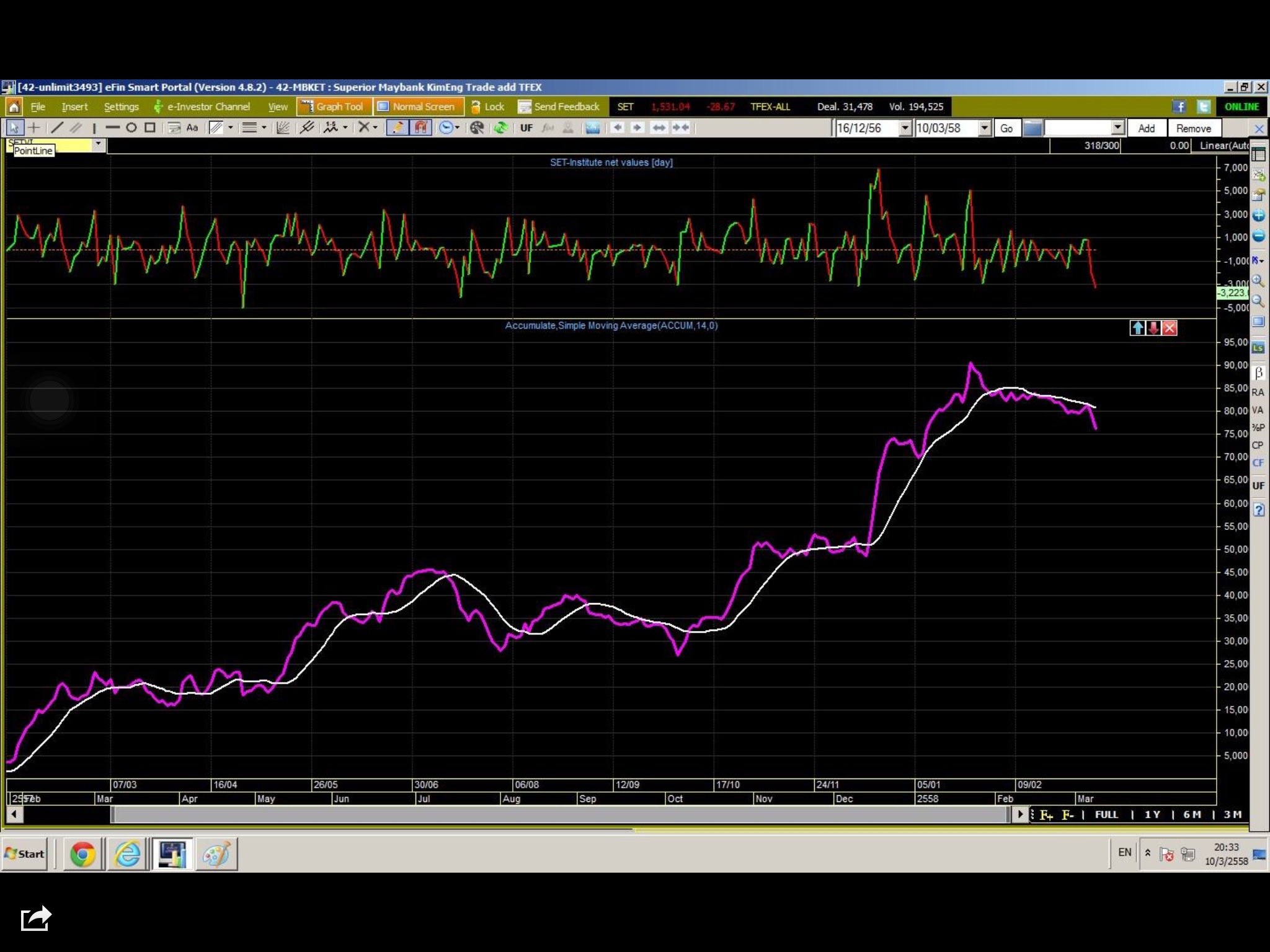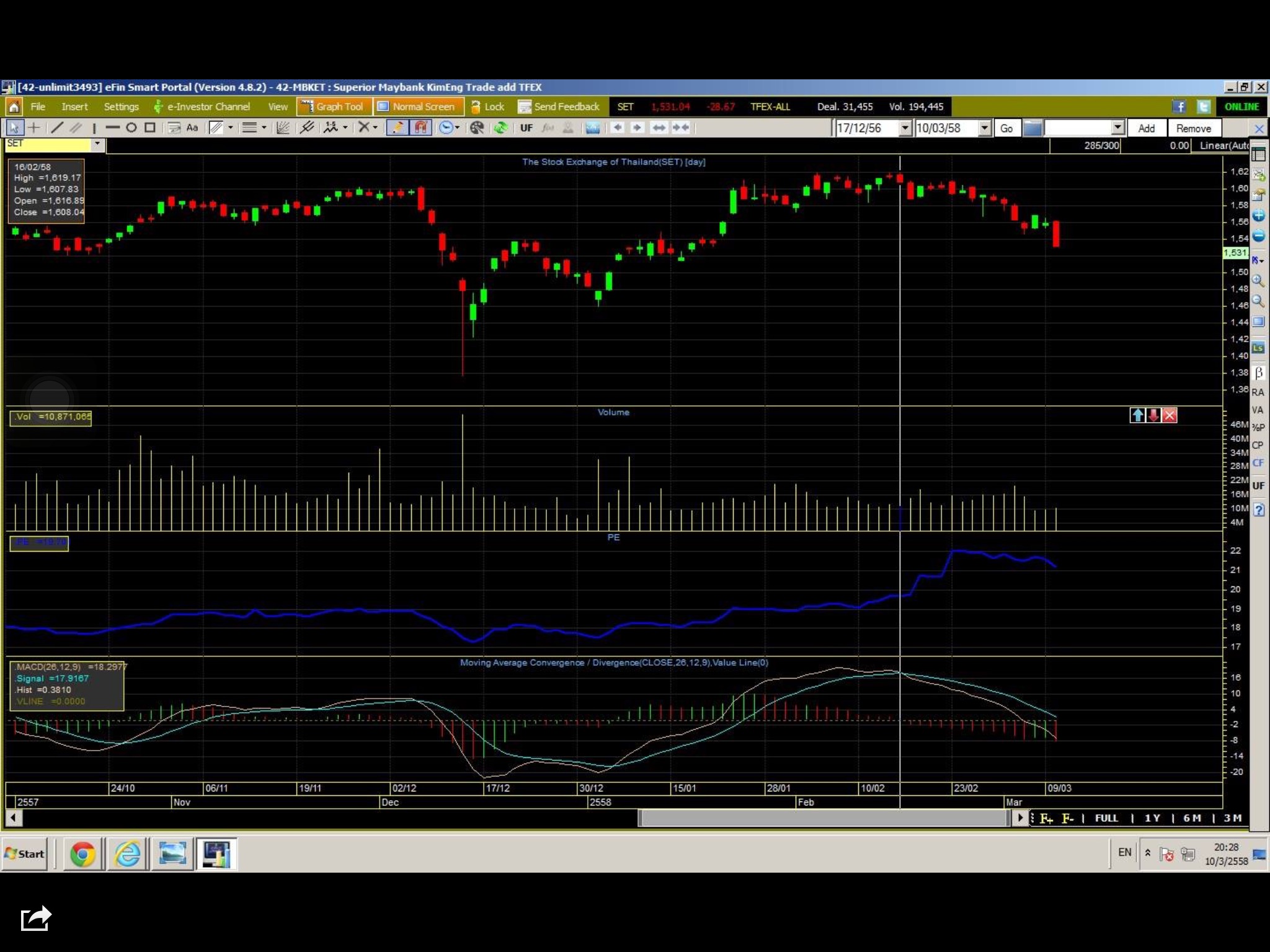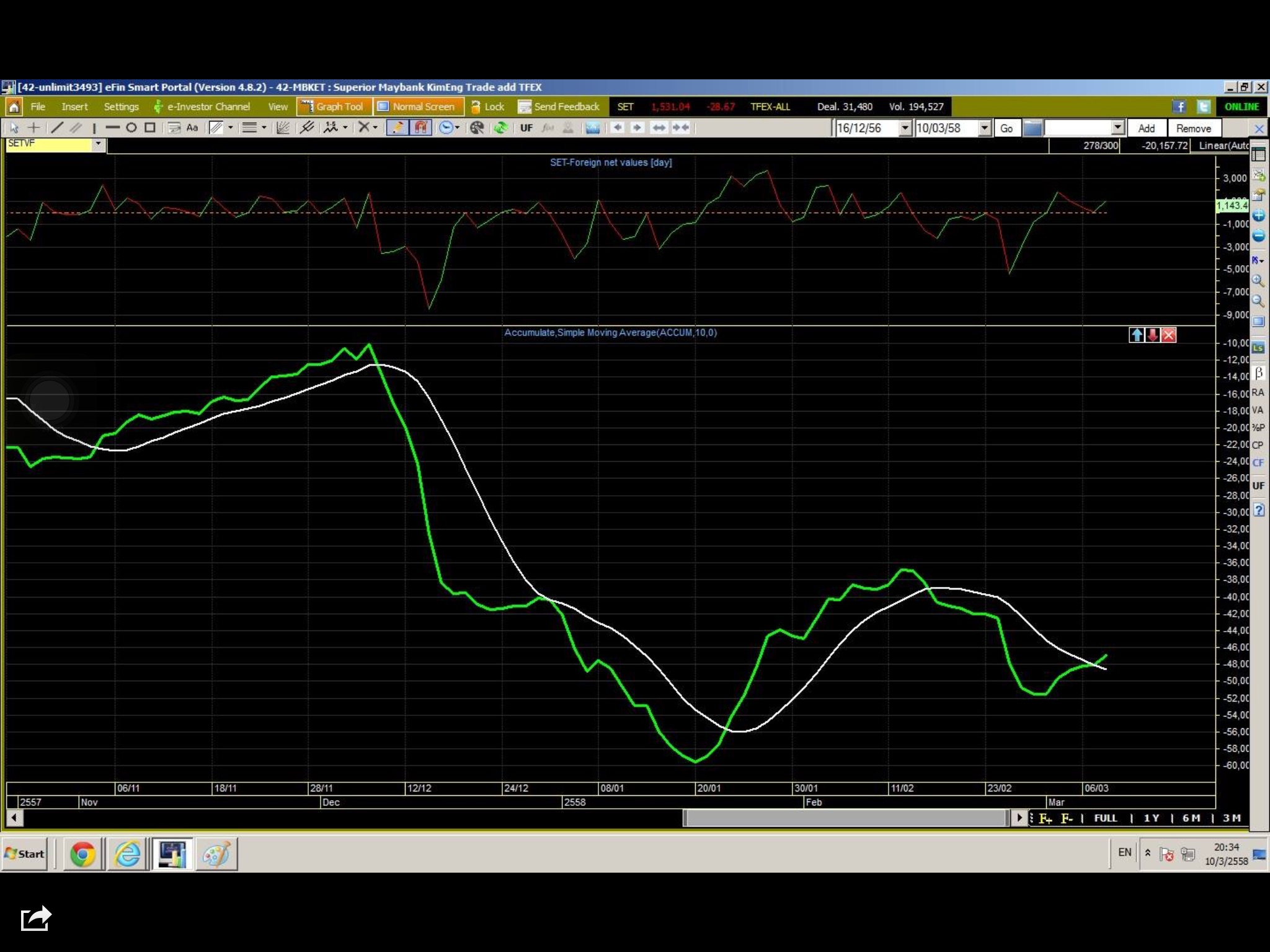 จากรูปแรก(day)จะเห็นว่าsetเป็นขาลง เช่นเดียวกับรูปที่สอง(week) แต่ volume ยังน้อย ส่วนรูปที่สามเป็นยอดซื้อขายรวมของต่าชาติ และรูปที่สี่เป็นยอดซื้อขายรวมของสถาบัน ซึ่งเห็นว่าต่างชาติทยอยซื้อเพิ่มขึ้นแต่น้อยกว่าที่สถาบันขาย ความเห็นส่วนตัวผลกระทบที่น่าจะทำให้ set ลงน่าจะมาจาก pe ที่แพงกว่าปกติ 18เท่าปัจจุบัน21เท่า จขกท.ตั้งกระทู้นี้ไว้แลกเปลี่ยนความคิดเห็น และเพื่อเป็นประโยชน์บ้าง จขกท.ตอนนี้พอร์ตกำลังว่างว่าจะจัดสักตัวแต่ยังไม่กล้า ใครมีหุ้นพื้นฐานแกร่งน่าเก็บก็แนะนำกันเพื่อไปทำการบ้านต่อ หุ้นลงคือเวลาหาของถูกและดีครับ