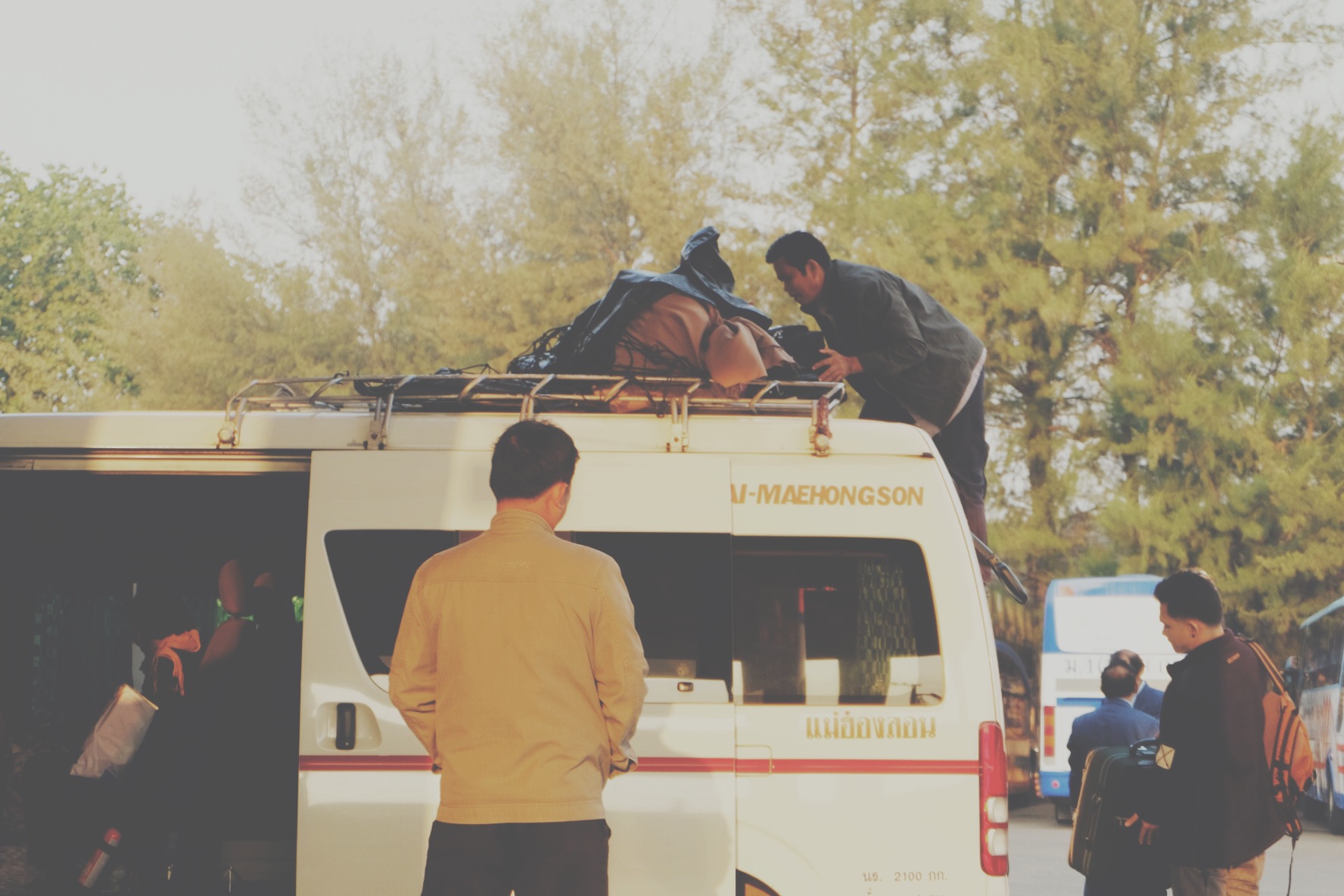 แล้วเดินไปขึ้นรถตู้ อาเขตตอนเช้าบรรยากาศดีมากจริง ๆ– พระเจ้ารถตู้นี่ตามคำร่ำลือเลย ผ่านกี่โค้งไม่รู้ แต่ดมยาดมไปร้อยรอบมาก ใครไม่แข็งแรงเตรียมยาไปให้ดี ในรถมีให้แค่ถุง คือคันเราอ่ะ มีผู้ชายจีนสามคนนั่งข้างหลัง นางเมารถแบบเล่นใหญ่กันมาก เสียงนี่เหมือนไหลออกมาทั้งลำไส้ พอรถจอด พุ่งออก แบบภาพนั้นจำติดตา ทั้งขำทั้งสงสาร