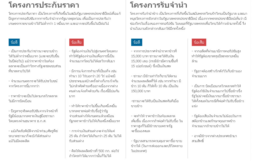 อยากทราบรายละเอียดของนโยบาย ประกันราคาข้าวกับนโยบายรับจำนำข้าว