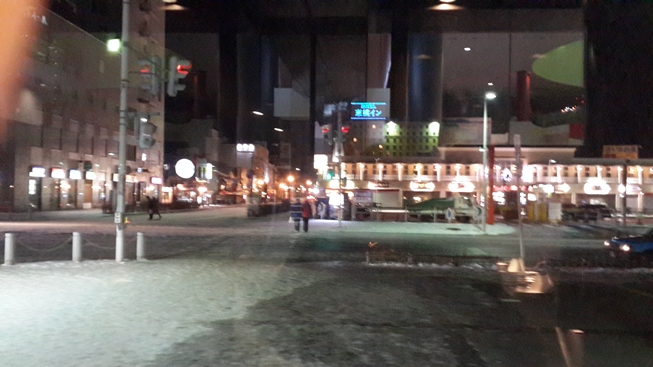 พอเดินออกมาจากสถานีรถไฟ ร่างกายก็ปะทะกับความหนาว แต่หนาวน้อยกว่า Aomori เยอะ หิมะเริ่มละลายกลายเป็นปัญหา พื้นลื่นมาก การเดินต้องใช้ความระมัดระวังอย่างสูง เจอรูปแล้ว แต่ถ่ายตอนขากลับ อาจจะไม่ชัดเงากระจกสะท้อน