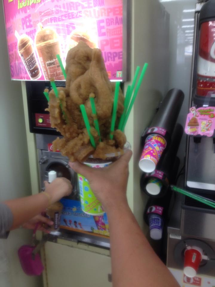 แต่หลัง ๆ มา รู้วิธีทำแล้ว ก็สำเร็จจนได้ กดแก้วละ 10 บาท ได้เป็น20บาท ออกจากร้าน เพื่อช่วยรุมกันกินทันที เพราะจะละลาย