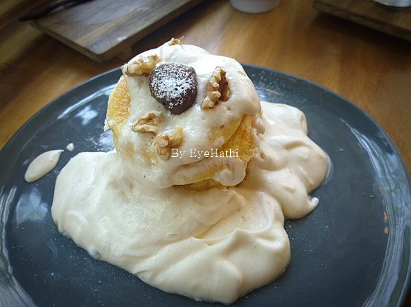 อีกจานเป็นมารูน 5 ชื่อเก๋เลย เป็นแพนเค้กราดซอสเมเปิ้ล จานนี้แพนเค้กจะนุ่มกว่าจานแรกมากค่ะ และซอสเมเปิ้ลก็เก๋กว่าร้านอื่นตรงเป็นฟองๆครีมๆ เดาว่าตีเข้าดัวยกันเนาะ อร่อยดีค่ะ