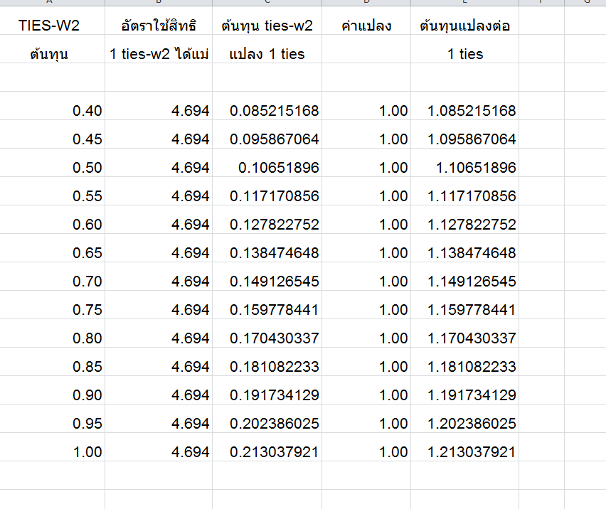 (๑) อัตราใช้สิทธิ 1 ties-w2 : 4.694 ties