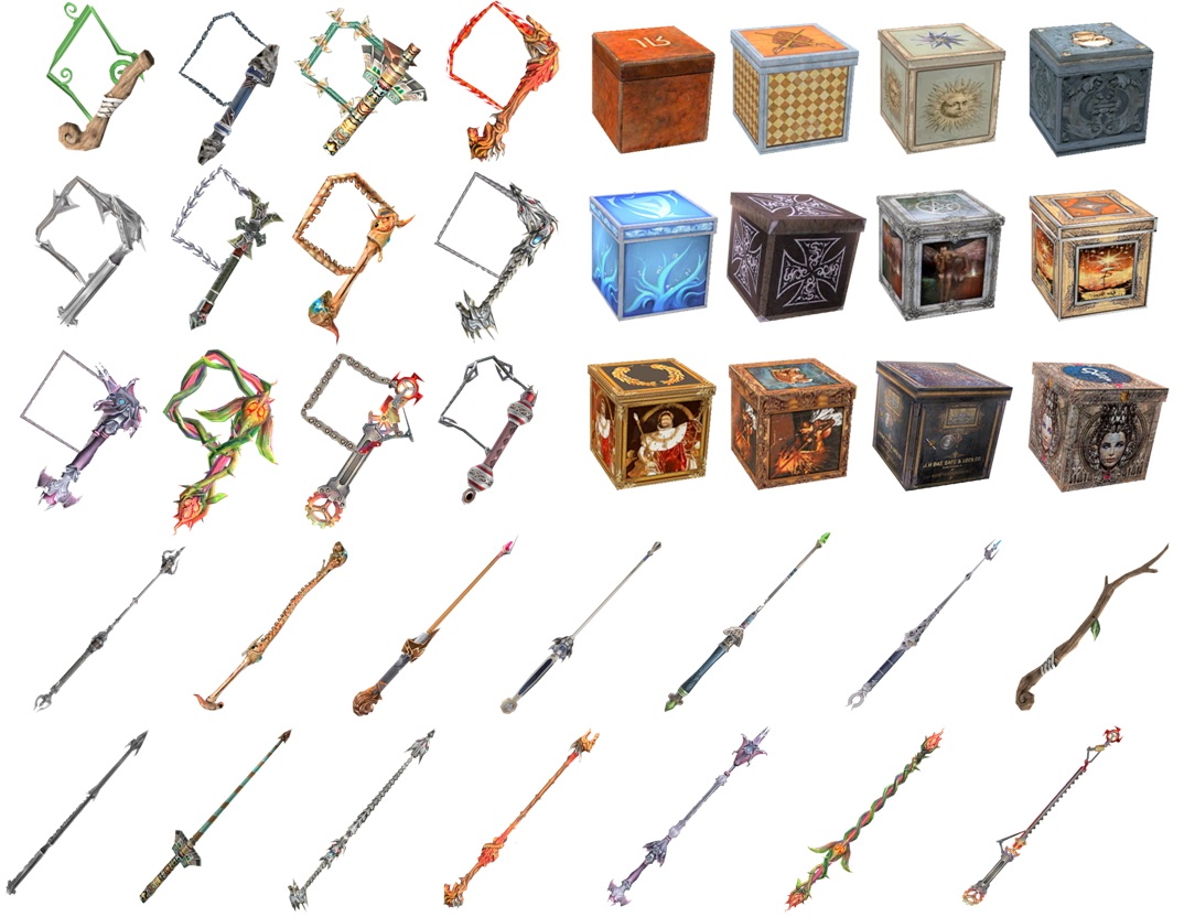 ตัวอย่างอาวุธต่างๆของอาชีพนักมายากลค่ะ