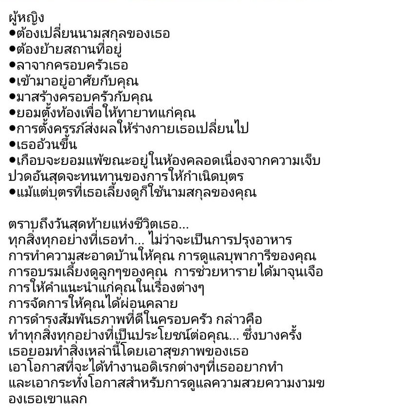 แต่เราเห็นด้วยกับบทความนี้ คู่ชีวิตควรตระหนักไว้ว่าอีกฝ่ายทำอะไร