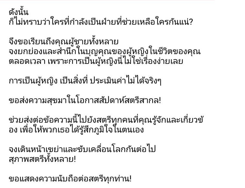 บทความเขียนมาเพื่อให้ฝ่ายชายตระหนักบ้างว่าฝ่ายหญิงทำอะไร ไม่ใช่ว่าเห็นเค้าทำให้มานานจนชิน ก็คิดเหมาเอาว่าเป็นหน้าที่ที่เค้าต้องทำ