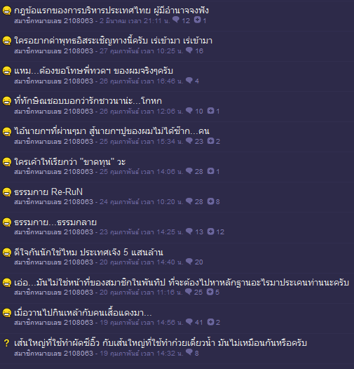 เห็นแล้วต้องขอบอกว่า น้องรักจริงฯให้เวลากับงบประมาณของแผ่นดินมากมายไม่ใช่เล่น กว่า 80 เปอร์เซ็นต์ของกระทู้จะพูดถึงเรื่องเหล่านี้ แม้บางกระทู้จะออกแนวกระทบกระเทียบ -ดันหรือเสียดสีก็ตาม แต่มันก็บ่งบอกถึงความเจ็บเนื้อร้อนใจของน้องเป็นอย่างดี