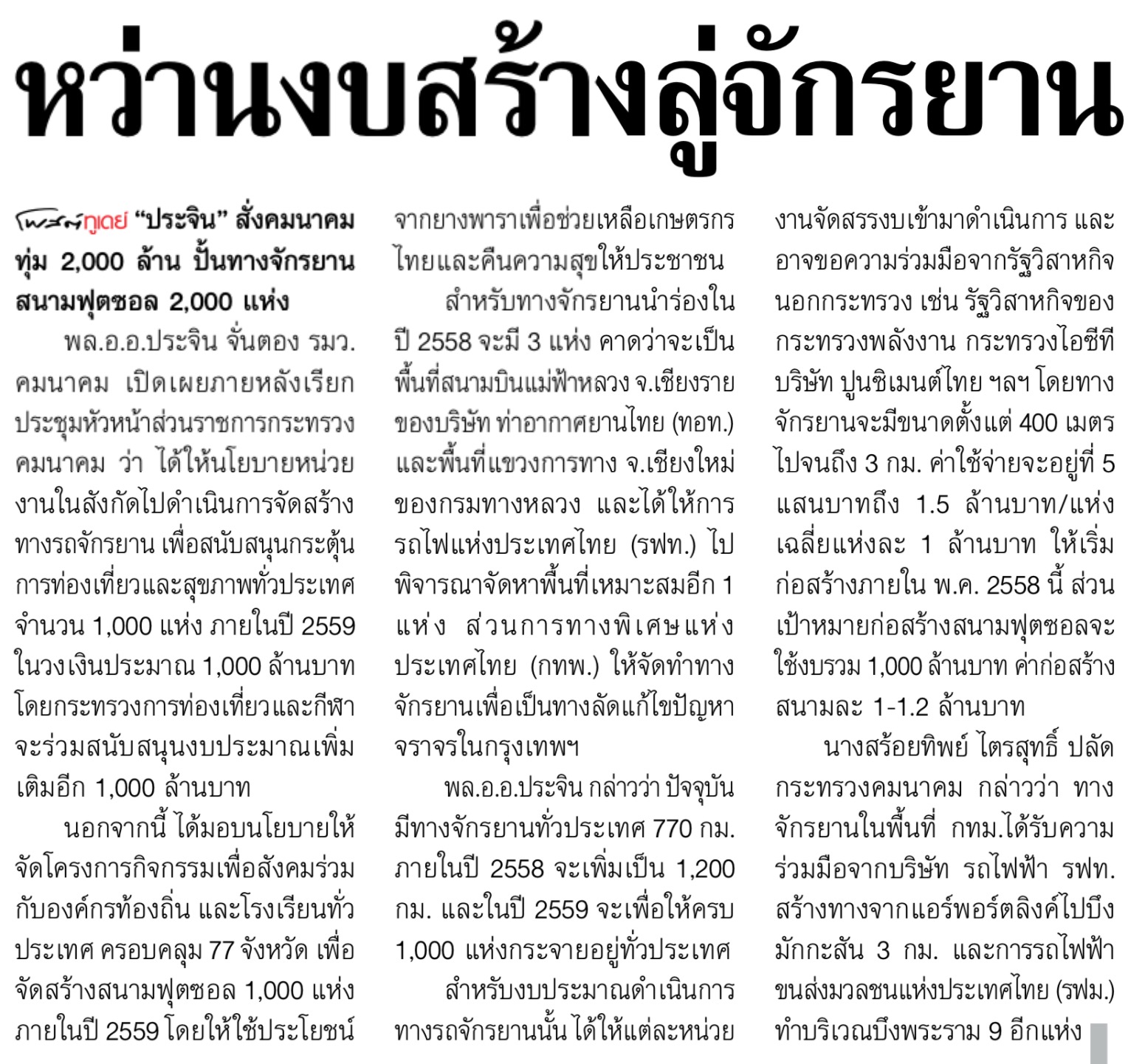 ข่าวดี คมนาคมหว่านงบสร้างทางจักรยานทั่วประเทศ ( แต่...)