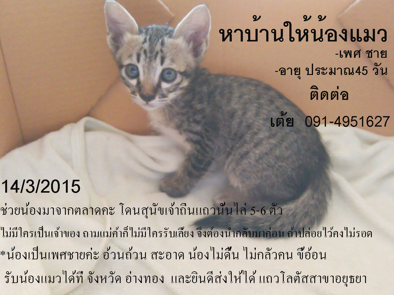 หาบ้านให้ลูกแมวค่ะ แมวจรถูกแม่ทิ้ง มีใครสนใจรับไปเลี้ยงมั้ยคะ