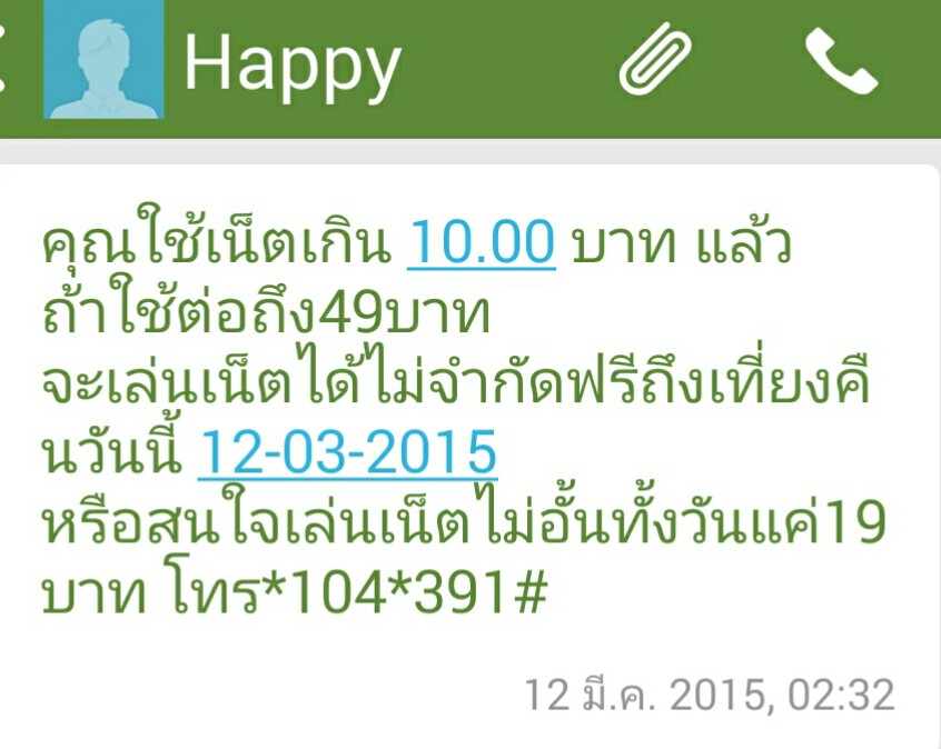 มีข้อความเข้า คุณใช้เน็ตเกิน 10 บาท