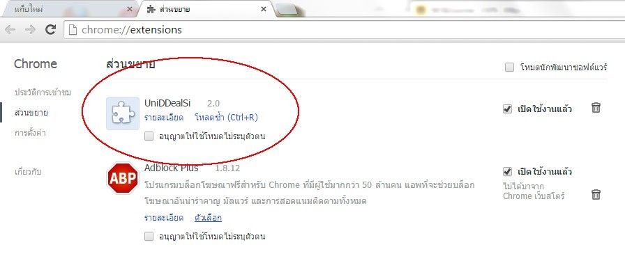 เข้าไปที่แท็บควบคุม google chrome ไปที่เครื่องมือส่วนเพิ่มเติม ไปที่ส่วนขยาย ลบก็แล้ว ติกไม่ใช้งานก็แล้ว ยังมาอีก เข้าไปถอนที่ Control panel ไปที่ Uninstall program ลบไปแล้วก็กลับมาอีก ทำไงดีค่ะ