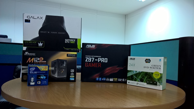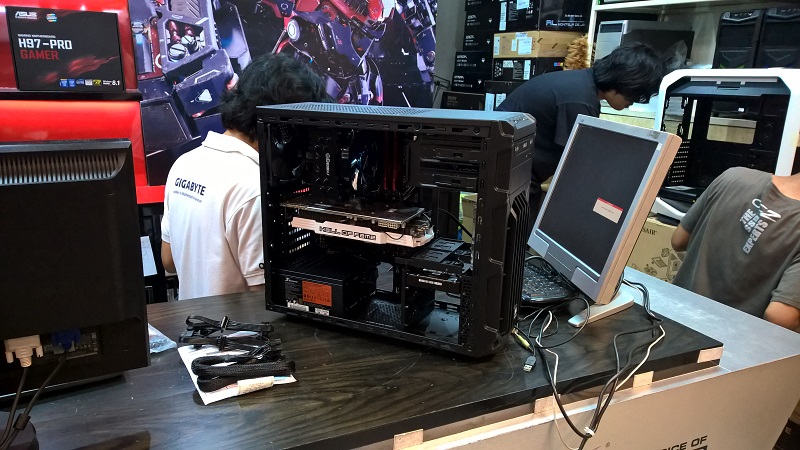 ตอนแรกก็ตัดใจไปแล้ว กะว่าค่อยมาประกอบใหม่สิ้นเดือนละกัน แต่อยู่ๆก็นึกได้ว่ายังไม่ได้เดินชั้นบนสุดเลย (ชั้น 4) เลยเดินๆเข้าไปดูหน่อย เจอร้านนึงพอดี พอเดินผ่านหน้าร้านเท่านั้นแหละ! นี่มันการ์ดที่เราถามหา วางโชว์อยู่บนตู้กระจก ผมก็ไม่รีรอเลยเดินเข้าไปถามว่ามีการ์ดตัวนี้ขายรึเปล่าครับ พี่คนขายก็บอกว่ามี แต่ว่าไม่ขายแยก ถ้าจะเอาก็ต้องประกอบกับที่ร้านเท่านั้น แถมการ์ดที่เล็งไว้ยังราคาถูกกว่า 23k อีก โอ้ววว