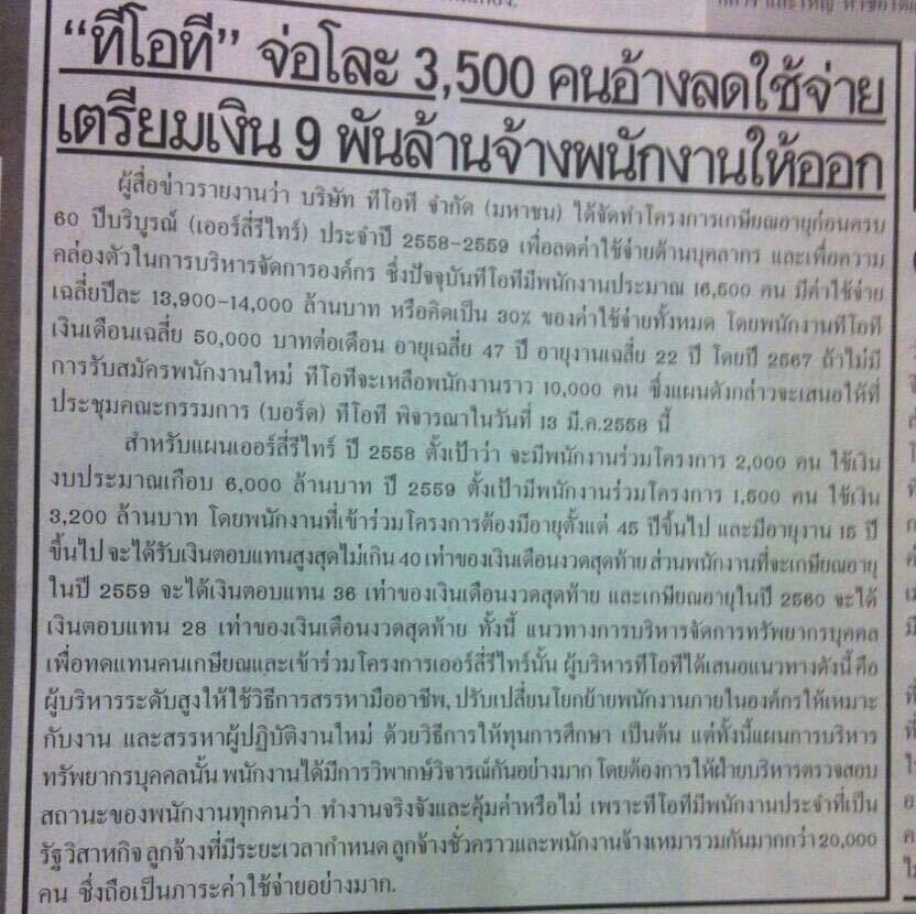จริงไหมครับ ปลดพนักงาน TOT ใครเป็นเสื้อแดงจะได้รับการพิจารณาก่อน