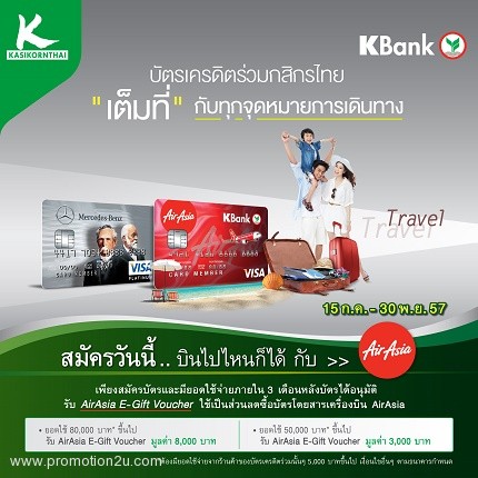 สอบถามคุณ K8888 เรื่อง Promotion การสมัครบัตรเครดิตกสิกรไทย และบัตรร่วมต่างๆ และได้รับ Voucher Airasia ค่ะ