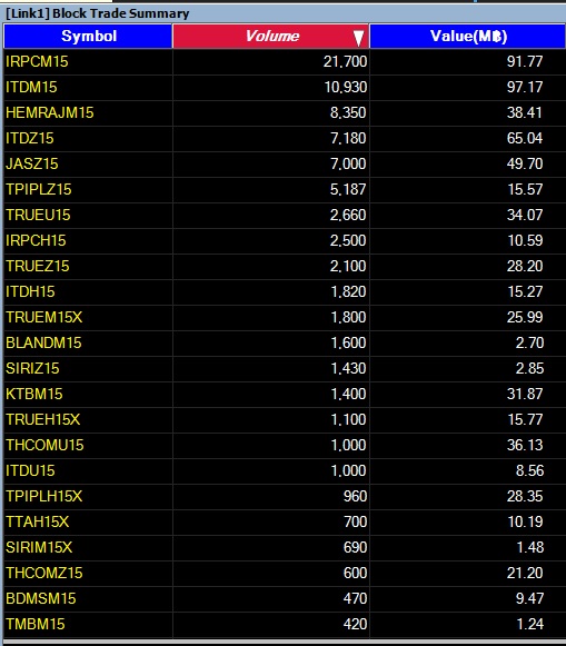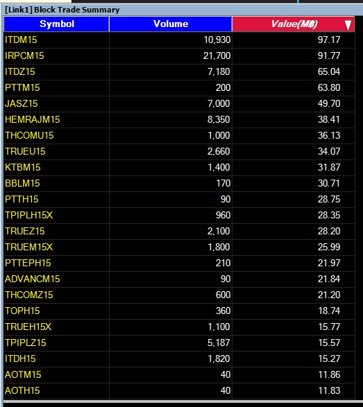 รายงาน 20 อันดับ SSF ที่ทำรายการ Block Trade 16/3/58 20 อันดับแรก