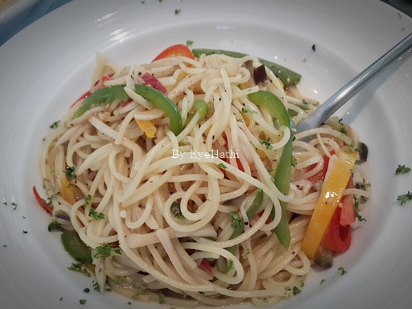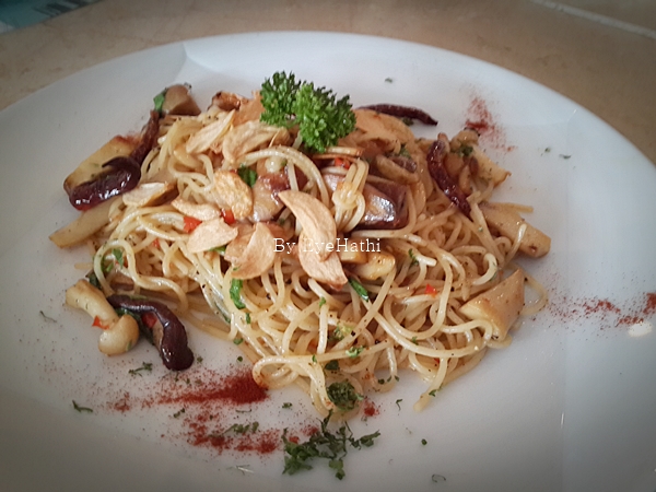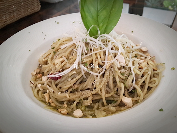 สปาเก็ตตี้มังสวิรัติ มี 2 อย่าง แบบผัดพริกกระเทียม กับซอสเพรสโต้ค่ะ ผัดพริกกระเทียม เฉยๆ เคยกินร้านที่อร่อยกว่ามา ส่วนซอสเพรสโต้หอมดีค่ะไม่เหม็นเขียว แต่กินแล้วจะเหมือนมีอะไรสากๆติดลิ้นหน่อย