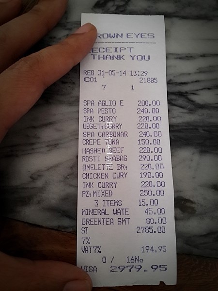 ที่ลงใบเสร็จเรื่อยมา ไม่ได้ต้องการยื่นยันในเรื่อง CR นะคะ แต่บางทีเมนูถ่ายมาไม่ครบบ้างไม่ชัดบ้าง เผื่อเพื่อนๆท่านใดอยากตามรอยไปชิม จะได้กะประมาณราคาของแต่ละจานถูกค่ะ ^^ เพราะอายทำบ่อยค่ะ แบบอยากไปร้านนี้ลองหารีวิวหลายๆทู้ เปิดๆดู ถ้าทู้ไหนไม่มีเมนูก็อาศัยกะเอาจากราคาต่อจานในใบเสร็จนั่นหละค่ะ ถ้าร้านไหนมีคนรีวิวมาก ก็แทบจะได้เมนูครบเลยทีเดียวจากใบเสร็จนี่หละ อิอิ