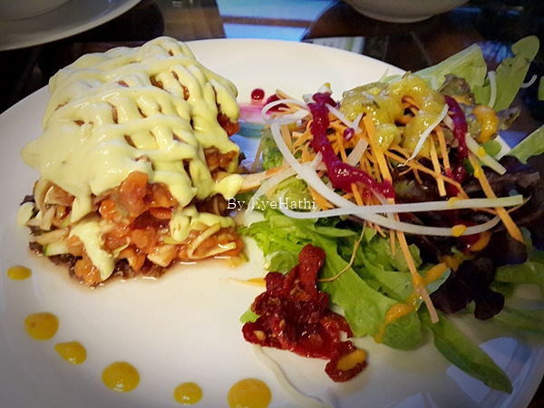 ลาซานญ่ามะเขือม่วง ง่าาาา ตัวเส้นที่เป็นแป้ง แทนที่ด้วยมะเขือม่วงค่ะ รสออกเปรี้ยวหวานอีกหละ ทุกสิ่งอันเป็นผักล้วนๆ กับครีมผัก