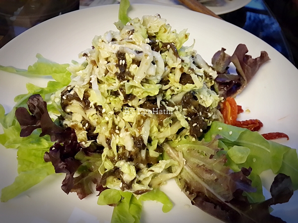 สลัดสาหร่าย จานนี้เป็นปัญหาเลยค่ะ คือ อายคงไม่ชินกับกลิ่นน้ำมันงา ที่มันค่อนข้างหืน ทางร้านเลยไม่คิดเงิน เพราะกินไม่ได้จริงๆ รู้สึกผิดเลย